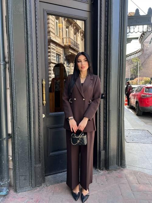Adoptez un style sophistiqué avec cet ensemble tailleur marron au design intemporel. Conçu pour sublimer votre silhouette, ce costume allie élégance et modernité grâce à sa coupe structurée et ses détails raffinés.